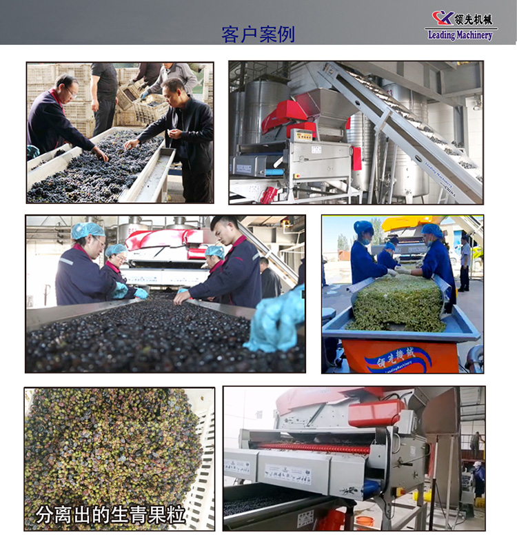 链板式葡萄除梗粒选生产线的除杂功能非常强大,可以自动筛选分离出部分碎果梗及生青果粒等杂质,酿造出的葡萄酒,果香浓郁,口感佳,适合用于精品葡萄酒庄使用。