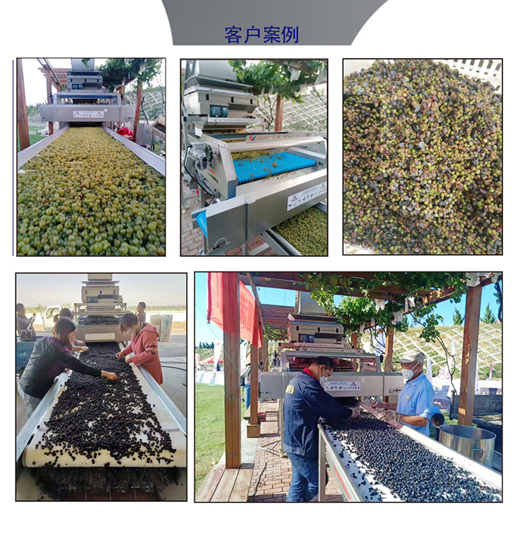 该生产线优势是:除梗率高、除梗力量柔和、葡萄破损率小。大小滚轮装置能自动分离出大部分碎果梗、生青粒、干缩果和霉烂果。并且对葡萄品种和产区的适应性强,配置高等大气。